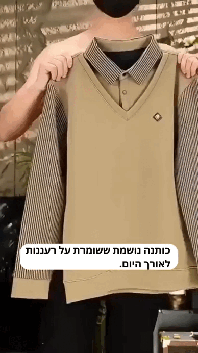 ™Avner | חולצת גברים עם צווארון פסים – סט 2 חלקים, כותנה נושמת ונוחה