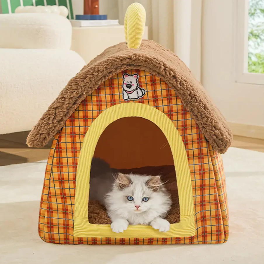 ™Chaver | מיטת מחמד חמה – מערה סגורה לחתולים וגורים, ניידת ומתקפלת