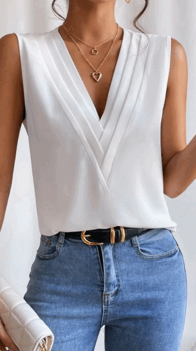 ™Liora | חולצת נשים עם קפלים ומחשוף V – נצחית, רב־שימושית ונוחה