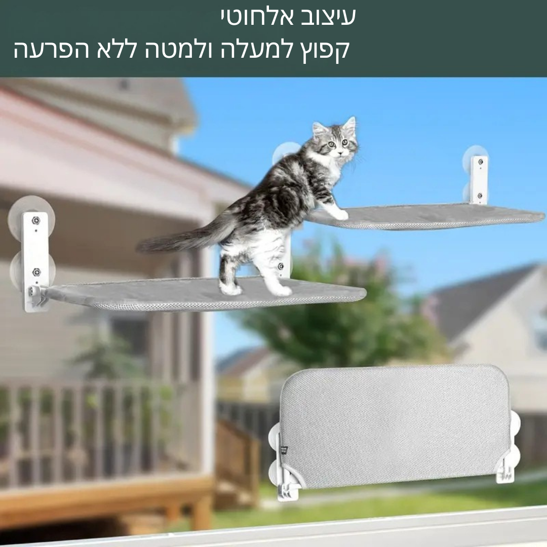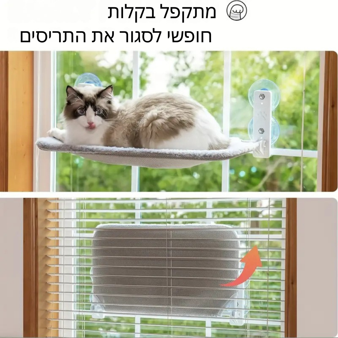 ™Menucha | ערסל חלון מתקפל לחתולים – כוסות יניקה חזקות ומשקל עד 18 ק"ג