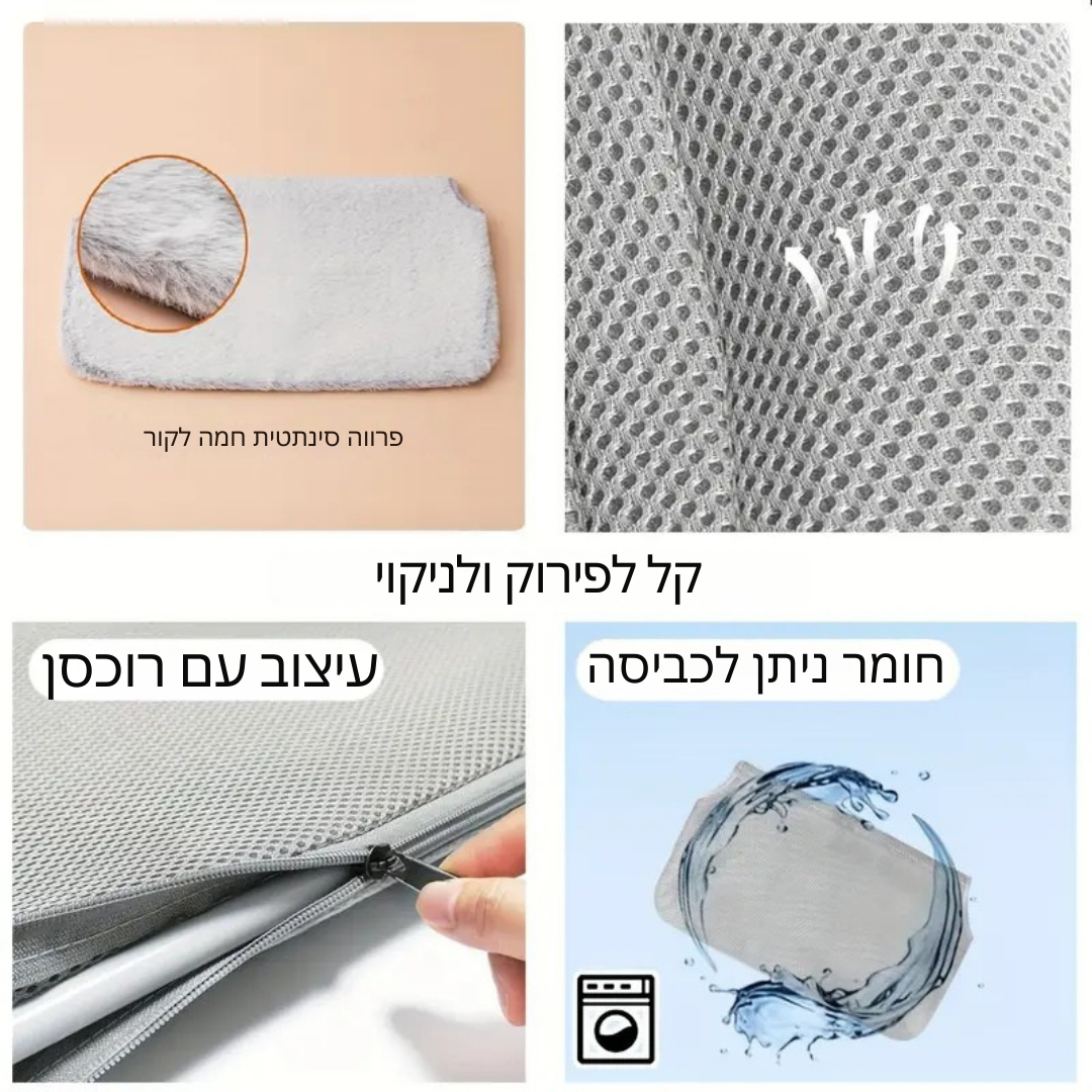 שונה ממיטות חתול רגילות, ™Menucha מעניקה לחתול שלך מקום מוגבה, בטוח ונעים לשהייה בשמש. העיצוב המתקפל וההפיך מאפשר פרטיות ונוחות לבעלים מבלי לפגוע בנוחות החתול.